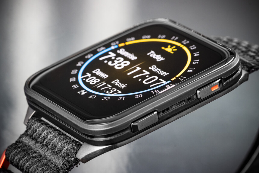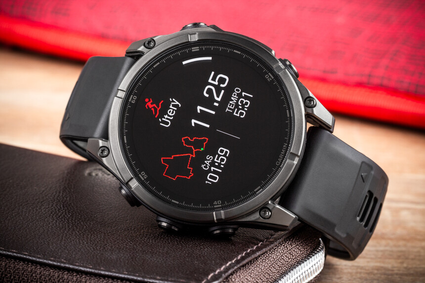 Garmin hat dem schlanken Gehäuse viel Gutes mitgegeben, aber nicht für alles war Platz: Es gibt eine integrierte Taschenlampe, die Uhr zeigt Topokarten, unterstützt fortschrittliche Sportfunktionen und hat den zuverlässigen Elevate 5 – allerdings ohne EKG, nur mit Hauttemperaturmessung. Platz blieb offenbar auch nicht für GPS mit Mehrfrequenzempfang – und damit auch nicht für SatIQ.