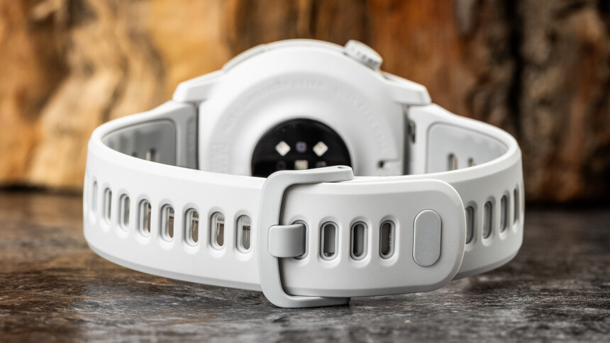 Der größte Trumpf im Design der Pace 4 ist seit jeher das Gewicht. Es hängt vom Armbandtyp ab (22 mm Bandanstoßbreite), zur Wahl stehen Silikon und Nylon. Am Nylonband wiegt die Pace 4 nur 32 Gramm, am Silikonband 40 g.