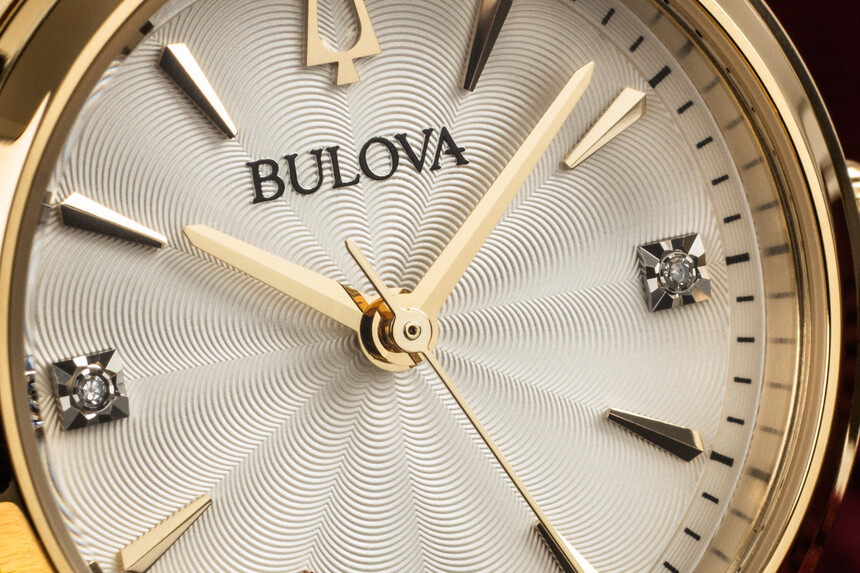 Als Siegerin dieser Kategorie haben wir die universell schöne Bulova Diamond Sutton gewählt, die Zartheit mit raffinierter Zier verbindet. Die Präsenz der goldenen Ausführung wird durch das cremefarbene Zifferblatt gemildert, dessen Fläche ein fast hypnotisch gewelltes Muster belebt.