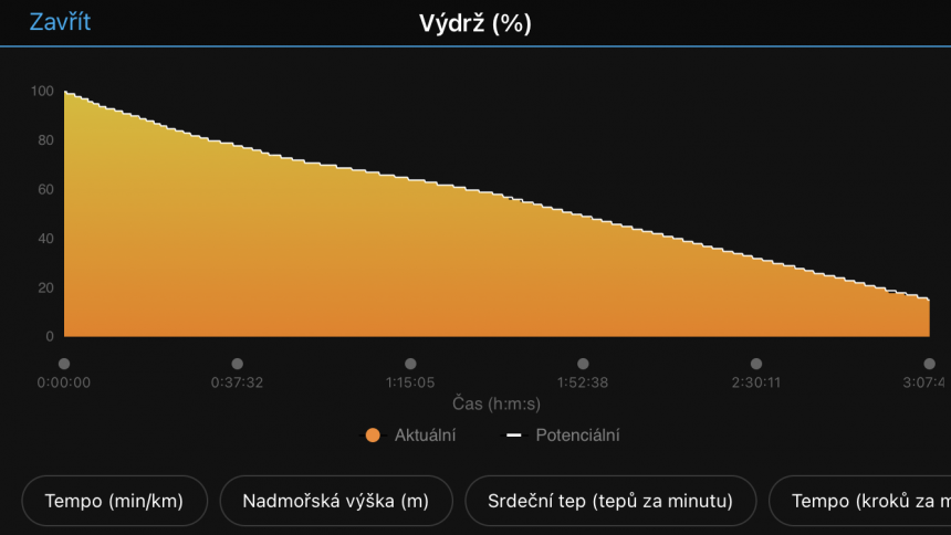 Die Ausdauerfunktion kann in Echtzeit berechnen, wie viel Prozent Ausdauer man noch hat, wie viele Kilometer man noch laufen kann oder wie lange. Ich persönlich finde diese Funktion für Ultramarathonläufer nicht sehr sinnvoll, da sie normalerweise nicht mehr als 50 km anzeigt. Aber alle Distanzen bis zum Marathon und darunter, kein Problem. Es könnte Sie nur ein wenig nervös machen.