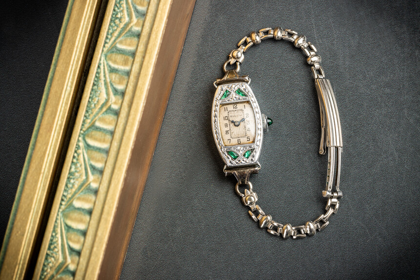 Das Gehäuse war mit synthetischen Saphiren und Smaragden besetzt. Sie markierte den ästhetischen Höhepunkt des damaligen Angebots und bewies, dass Uhren nicht nur ein funktionales Instrument, sondern auch ein wunderbares Schmuckstück sein können. Der Preis betrug 37,50 Dollar, was in heutiger Kaufkraft rund 720 Dollar entspräche.