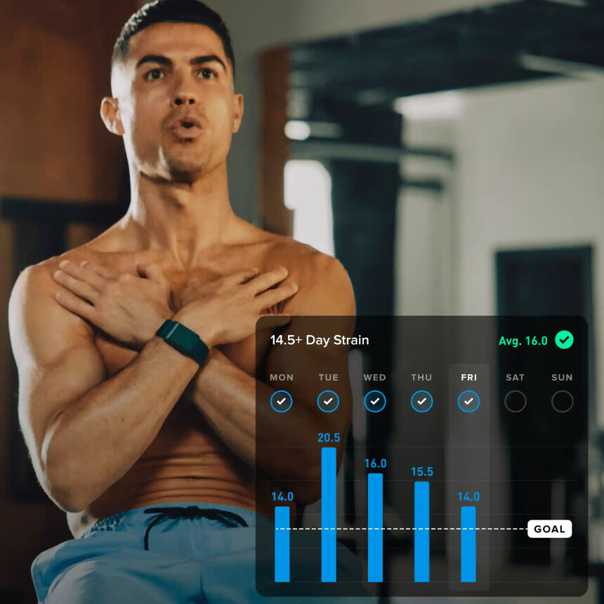 In dieser Hinsicht ist Whoop für mich das fortschrittlichste Lifestyle-Band überhaupt. Funktionen und Metriken sind gelungen, alles wird übersichtlich zusammengeführt — vielleicht auch deshalb sieht man es an den Handgelenken großer Sportikonen wie Cristiano Ronaldo, LeBron James und vielen anderen.