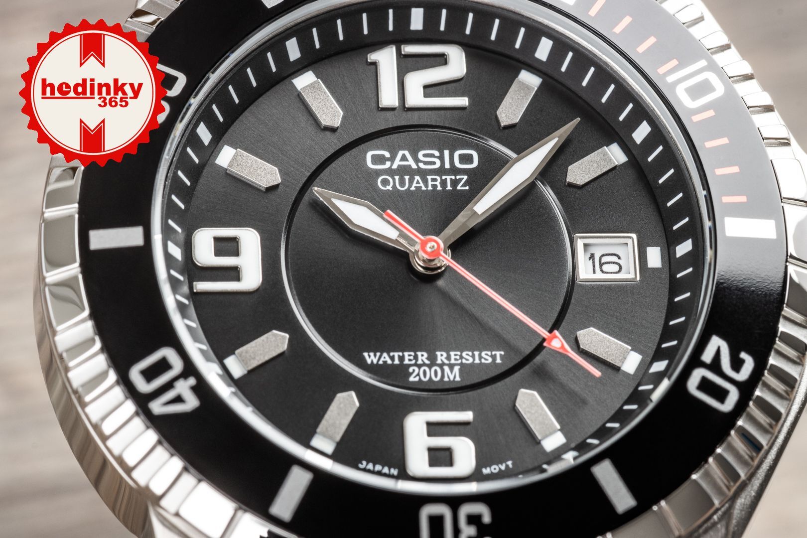 Quarz. Casio 2784, Genauigkeit ±20 s pro Monat, Batterie SR626SW (Lebensdauer 3 Jahre)