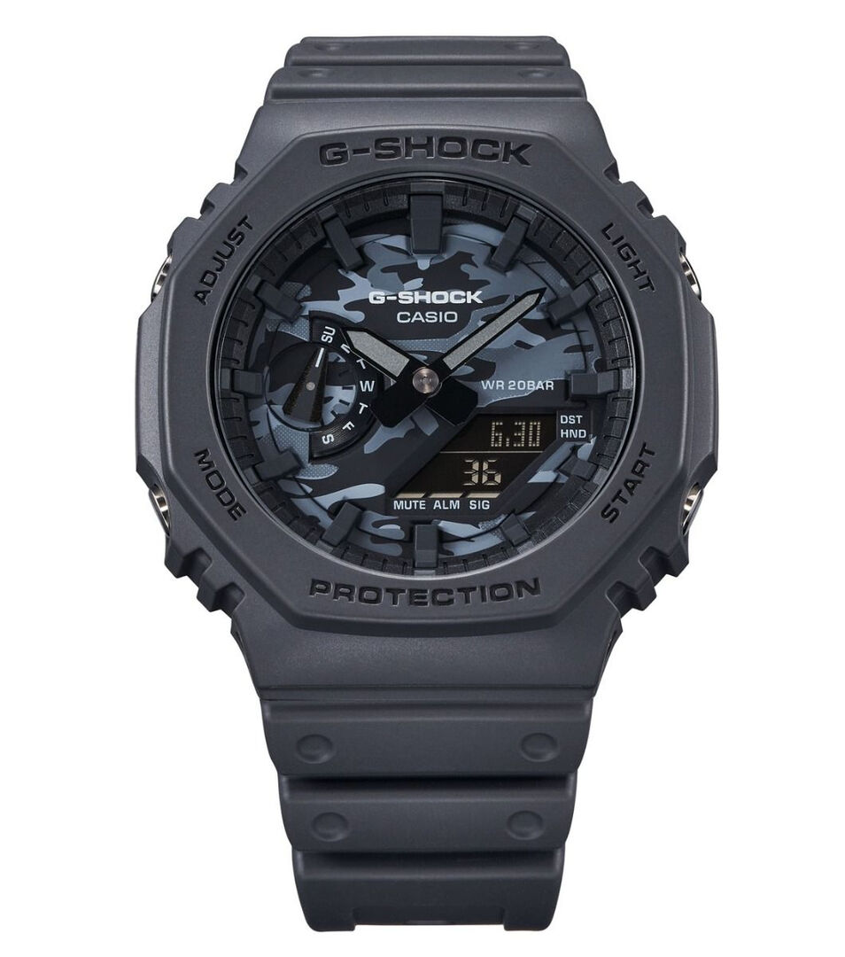 Hier ist es speziell die achteckige Lünette, die bei den Fans schnell den Namen "CasiOak" hervorgerufen hat, eben wegen ihrer Ähnlichkeit mit einer bestimmten renommierten Schweizer Uhrenmarke. Diese nennt ihre Modelle, die typisch für ihre achteckige Lünette sind, Royal Oak. Mit einer gewissen Übertreibung werden sie manchmal auch als "Affen des armen Mannes" bezeichnet. Die ursprüngliche Absicht war jedoch eine Hommage an den Vater der G-Shocks, Kikuo Ibe, da das Design der ersten G-Shock überhaupt, der DW-5000C, die Form eines Oktogons hatte.