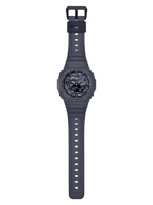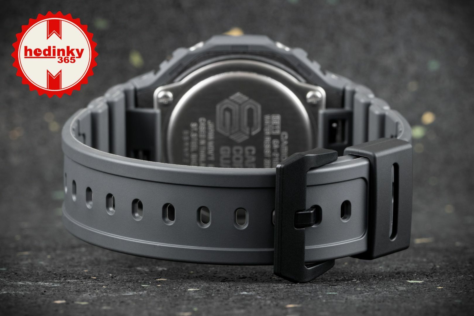 Dank der Verwendung von Karbon, d. h. der Carbon Core Guard-Konstruktion, ist die Uhr sehr leicht und ihre "Innereien" haben es geschafft, in ein Gehäuse von nur 11,8 mm Höhe zu passen, was die GA-2100 vielleicht zur dünnsten G-Shock aller Zeiten macht. Der Durchmesser des Gehäuses könnte (in der Welt der G-Shocks) als eher "unterdurchschnittlich" bezeichnet werden. Aber genau das sorgt dafür, dass die Uhr auch bei "weniger begabten" Personen gut in der Hand liegt und sich leicht unter dem Ärmel verstecken lässt.