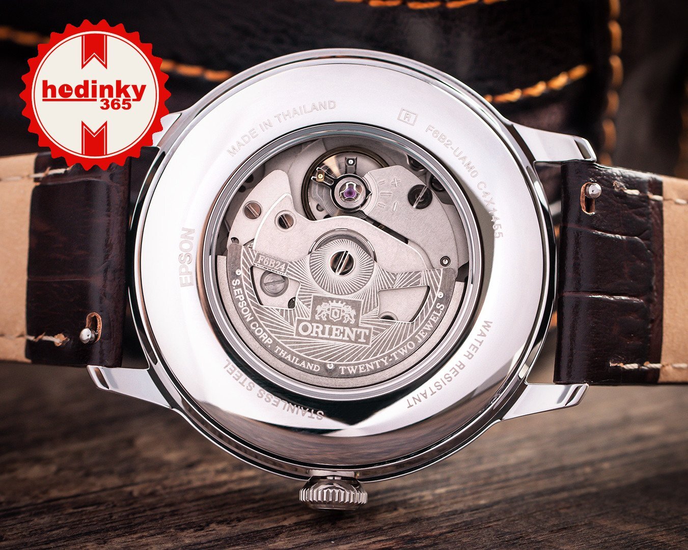 Mechanisch mit automatischem Aufzug. Orient F6B24, Gangreserve 40h, 21.600 BPH (3Hz), 22 Steine, Hacking, Möglichkeit des Handaufzugs, Reversible Aufzug
