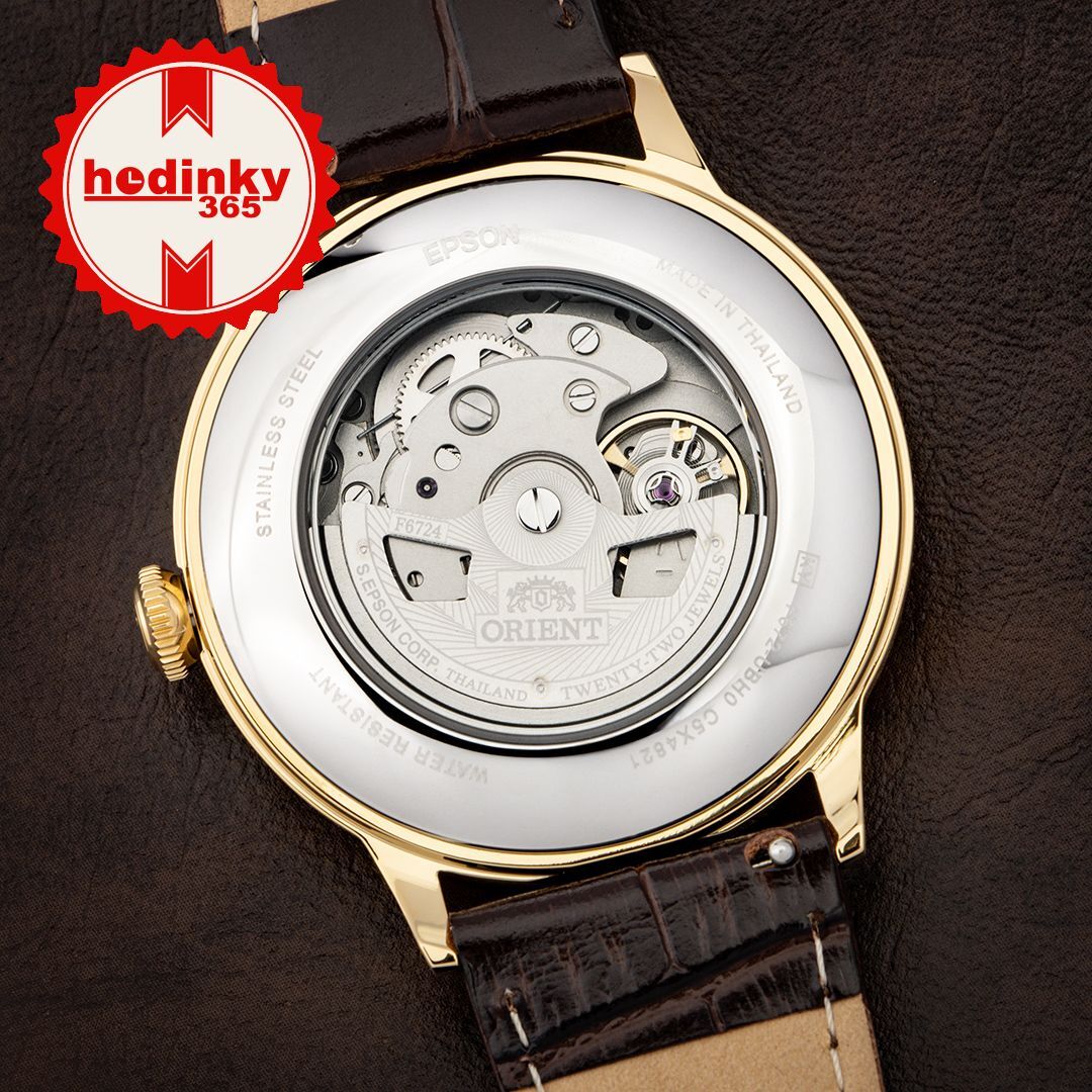 Mechanisch mit automatischem Aufzug. Orient F6724, Gangreserve 40h, 21.600 BPH (3Hz), 22 Steine, Hacking, Möglichkeit des Handaufzugs
