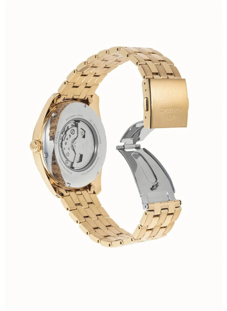 Mechanisch mit automatischem Aufzug. Orient F6D22, Gangreserve 40h, 21.600 BPH (3Hz), 22 Steine, Hacking, Möglichkeit des Handaufzugs