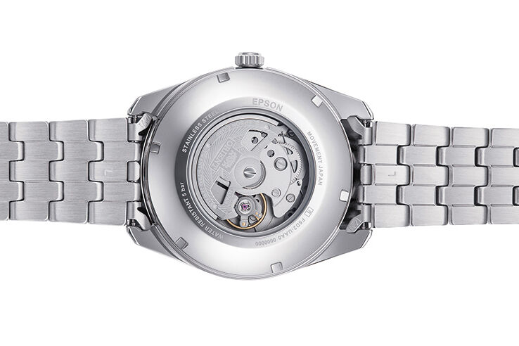 Mechanisch mit automatischem Aufzug. Orient F6D22, Gangreserve 40h, 21.600 BPH (3Hz), 22 Steine, Hacking, Möglichkeit des Handaufzugs
