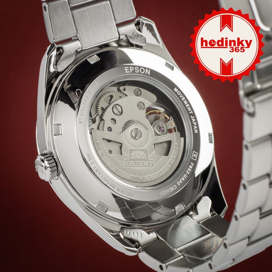 Mechanisch mit automatischem Aufzug. Orient F6S22, Gangreserve 40h, 21.600 BPH (3Hz), 24 Steine
