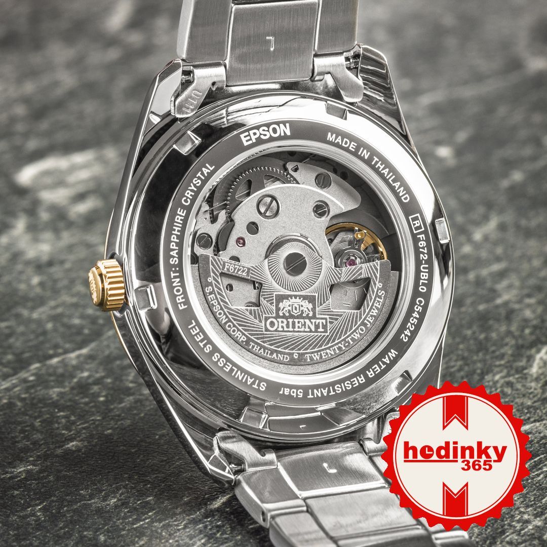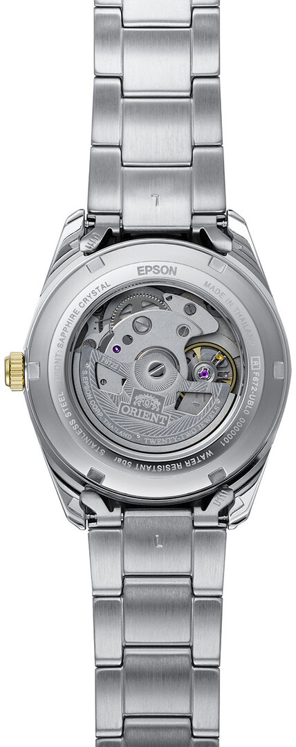 Mechanisch mit automatischem Aufzug. Orient F6722, Gangreserve 40h, 21.600 BPH (3Hz), 22 Steine, Hacking, Möglichkeit des Handaufzugs